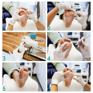 Protocole à réaliser lors de chaque consultation. Prévoir une consultation tous les 2-3 jours. En moyenne il faudra 2 à 4 consultations pour éliminer totalement l’hyperkératose.
