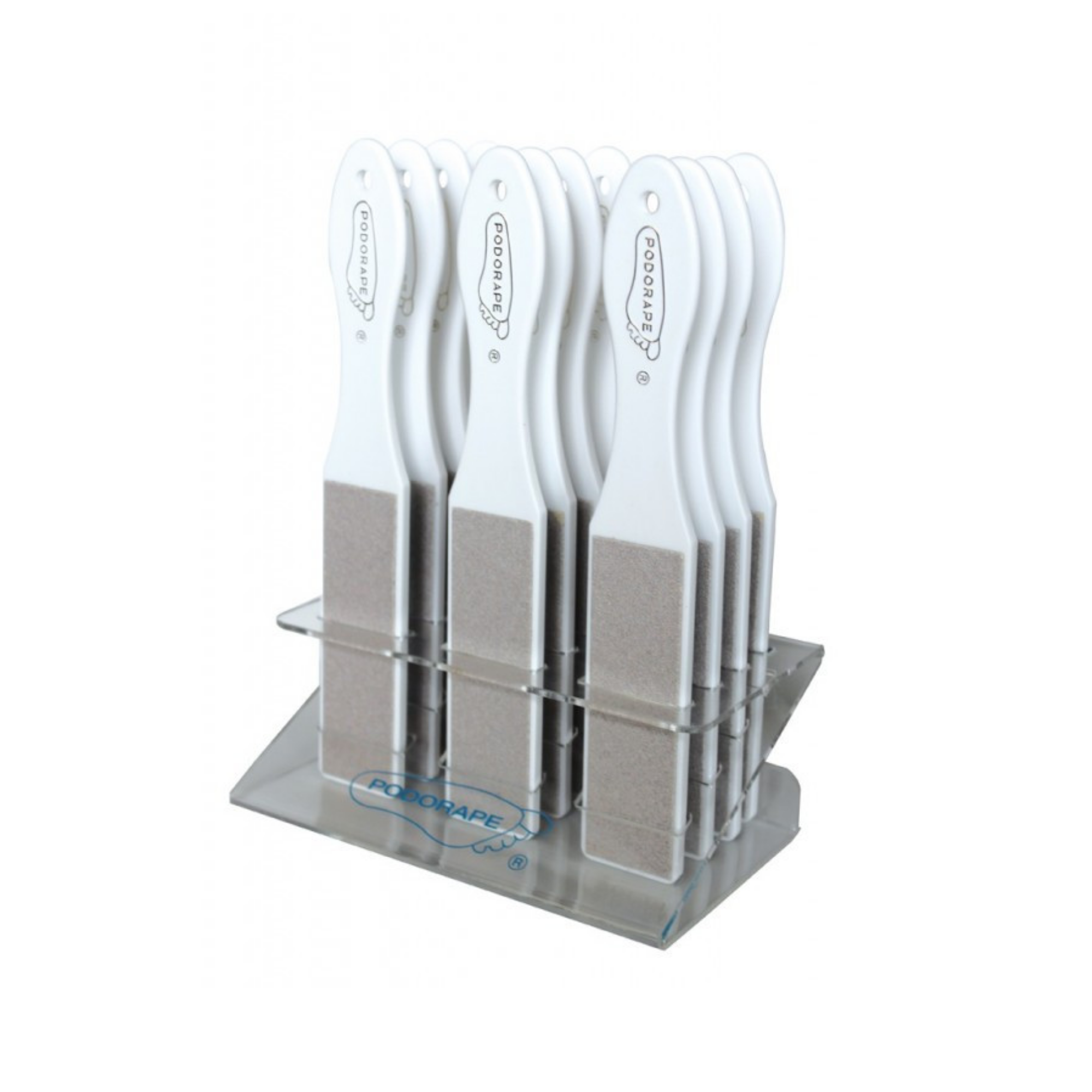 Présentoir Podorape vide pour 12 râpes de pédicurie
