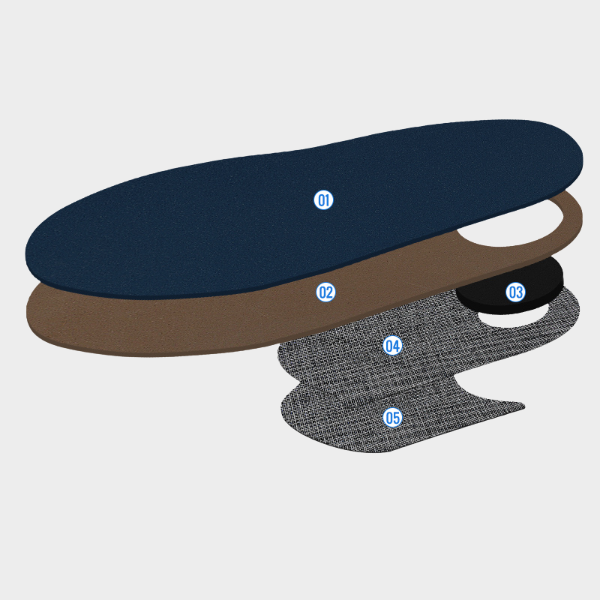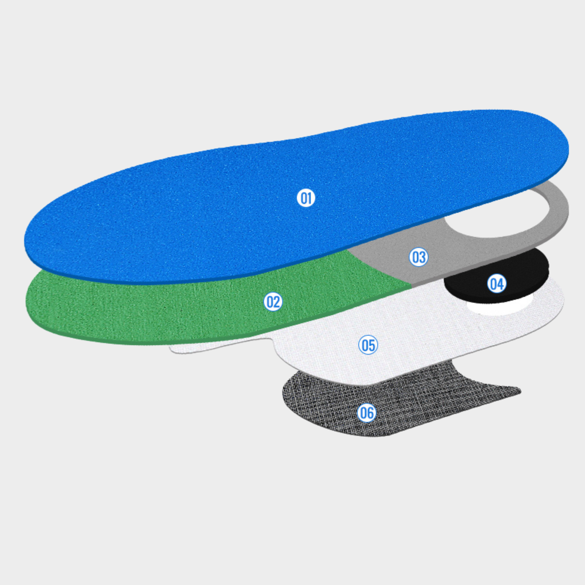 - Tapis mousse : mousses préformées exerçant une compression entre le pied et l’orthèse à réaliser. Deux renforts sont placés sur les côtés et le dessous du tapis, ils permettent de modifier la dureté en fonction de la morphologie du patient.
